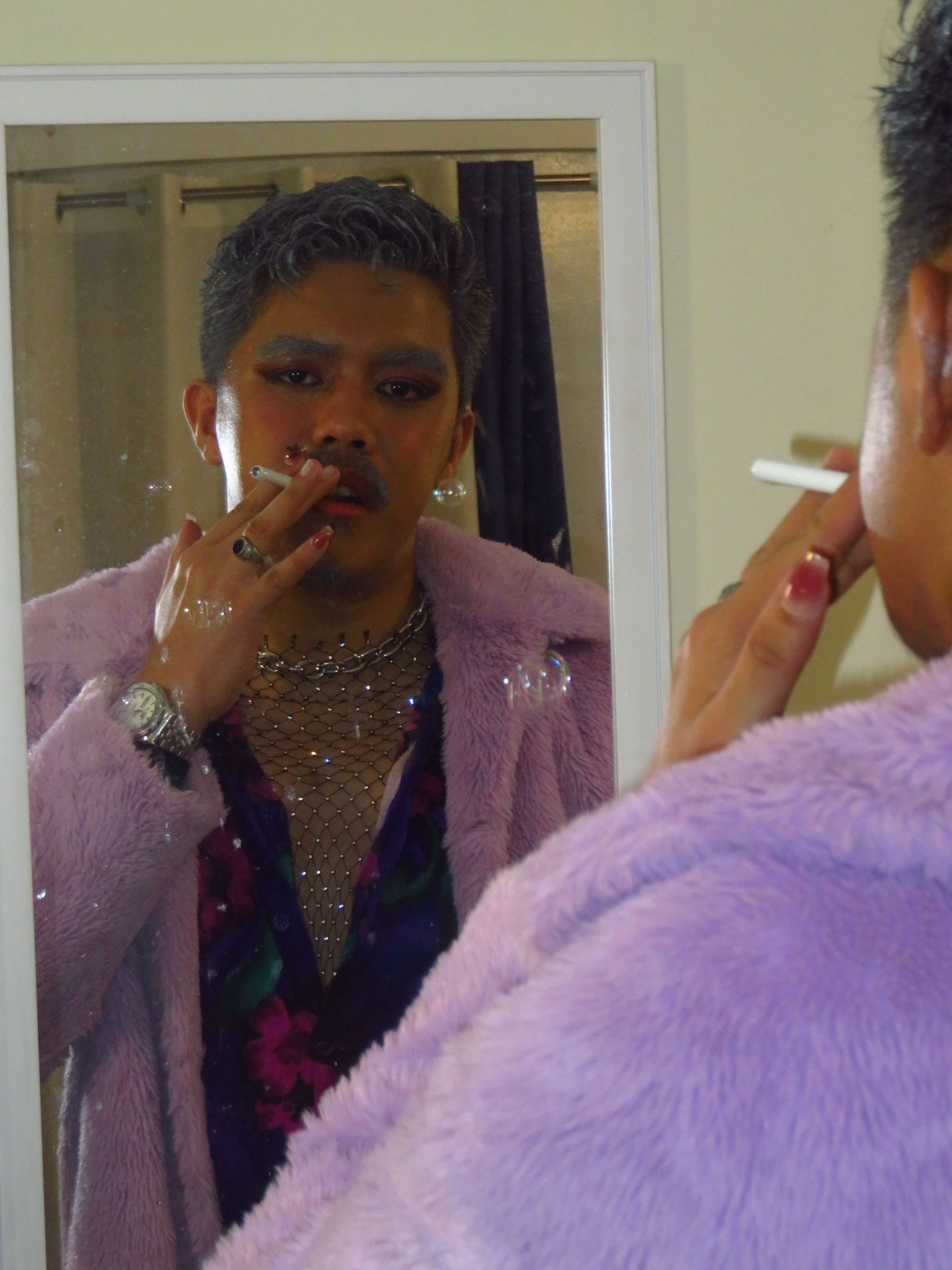 Disclaimer: I do not endorse cigarette use. The cigarette you see me “smoking” in these photos is a prop made of metal and shoots bubbles out instead of smoke. There is a real danger to cigarette smoking. I encourage you not to try it if you haven't started smoking yet, or try stopping if you already have.